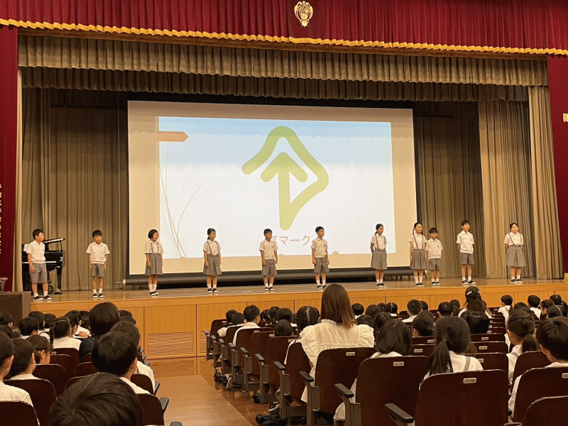 講堂で中学年が「カリタスタイム」に「耳が聞こえない」ことについて学んだ中から発表しました。