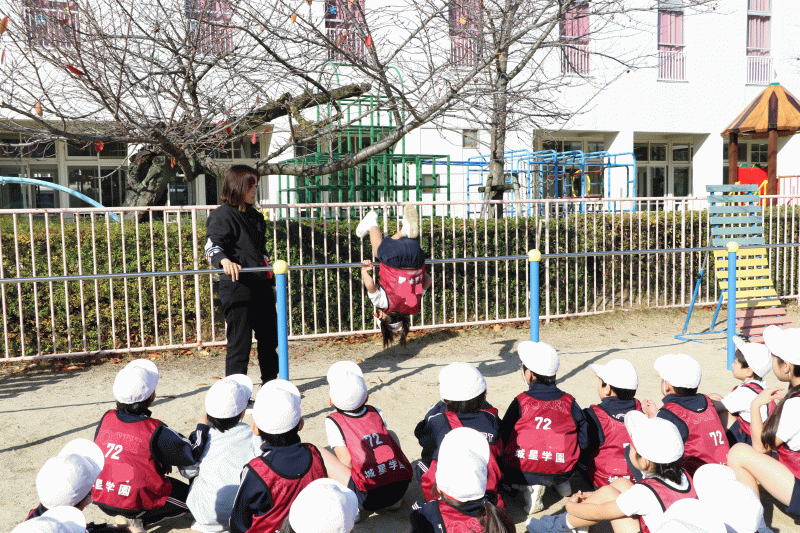 大きく、思いっきり地面をけり上げ、くるりん♪うまくいった達成感と笑顔が運動場にあふれていました。