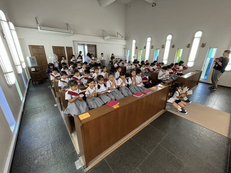 全 2994 件(全599ページ) 過去のページもご覧いただけます ⇒ 前へ 71 | 72 | 73 | 74 | 75 | 次へ 2024/6/24 お祈りの集い 今日もたくさんの子どもたちが聖堂に集まりました。 先生のお話に耳と目と心を向けて話を聞く姿が光の子へつながっていきます。 先生のお話に耳と目と心を向けて話を聞く姿が光の子へつながっていきます。 お祈りの集い 2024/6/24 今日もたくさんの子どもたちが聖堂に集まりました。 先生のお話に耳と目と心を向けて話を聞く姿が光の子へつながっていきます。 先生のお話に耳と目と心を向けて話を聞く姿が光の子へつながっていきます。 2024/6/21 第72回運動会を終えて 昨日、大阪城ホールで運動会を行いました。練習した成果を存分に発揮することができました。自分たちの演技・競技だけでなく、上級生や下級生が活躍している姿を見て大きな声援を送っているのが素敵でした。 朝会では、テレビ放送で800走の表彰式を行いました。 運動会でのがんばりを今後も活かしていけるようにしていきましょう。 朝会では、テレビ放送で800走の表彰式を行いました。 運動会でのがんばりを今後も活かしていけるようにしていきましょう。 第72回運動会を終えて 2024/6/21 昨日、大阪城ホールで運動会を行いました。練習した成果を存分に発揮することができました。自分たちの演技・競技だけでなく、上級生や下級生が活躍している姿を見て大きな声援を送っているのが素敵でした。 朝会では、テレビ放送で800走の表彰式を行いました。 運動会でのがんばりを今後も活かしていけるようにしていきましょう。 朝会では、テレビ放送で800走の表彰式を行いました。 運動会でのがんばりを今後も活かしていけるようにしていきましょう。 2024/6/19 あと1日 今日は運動会練習最終日です。 明日の本番に向けて最終の仕上げを行いました。 明日の本番に向けて最終の仕上げを行いました。 練習をしていると空に虹がかかっていました。 明日の運動会が成功しますように。 練習をしていると空に虹がかかっていました。 明日の運動会が成功しますように。 あと1日 2024/6/19 今日は運動会練習最終日です。 明日の本番に向けて最終の仕上げを行いました。 明日の本番に向けて最終の仕上げを行いました。 練習をしていると空に虹がかかっていました。 明日の運動会が成功しますように。 練習をしていると空に虹がかかっていました。 明日の運動会が成功しますように。 2024/6/18 心をあわせて 雨が上がり、午後から3・4年生が運動会集団演技の練習をしました。 普段は別々に過ごす3・4年生。 集団演技では、声を、動きを、心をあわせて、一生懸命に踊ります。 ひとりひとり輝いている姿がとても素敵です! 普段は別々に過ごす3・4年生。 集団演技では、声を、動きを、心をあわせて、一生懸命に踊ります。 ひとりひとり輝いている姿がとても素敵です! 心をあわせて 2024/6/18 雨が上がり、午後から3・4年生が運動会集団演技の練習をしました。 普段は別々に過ごす3・4年生。 集団演技では、声を、動きを、心をあわせて、一生懸命に踊ります。 ひとりひとり輝いている姿がとても素敵です! 普段は別々に過ごす3・4年生。 集団演技では、声を、動きを、心をあわせて、一生懸命に踊ります。 ひとりひとり輝いている姿がとても素敵です! 2024/6/17 光の子の「り」 休み時間、小聖堂ではお祈りの集いが開かれました。今日は、長いお箸を使ってご飯を食べる天国と地獄のお話です。 地獄では、自分一人だけでご飯を食べようとしますが、長いお箸ではご飯をつかむことができても口に運ぶことができないので、食べることができません。 天国では、一人が長いお箸でご飯をつかんで、もう一人の口に運びます。協力することで、みんながご飯を食べることができます。 地獄では、自分一人だけでご飯を食べようとしますが、長いお箸ではご飯をつかむことができても口に運ぶことができないので、食べることができません。 天国では、一人が長いお箸でご飯をつかんで、もう一人の口に運びます。協力することで、みんながご飯を食べることができます。 光の子の「り」は、隣人の必要に気付く子。 自分のことだけでなく、周りの人のことを考えて、大切に過ごすことができますように。 光の子の「り」は、隣人の必要に気付く子。 自分のことだけでなく、周りの人のことを考えて、大切に過ごすことができますように。 光の子の「り」 2024/6/17 休み時間、小聖堂ではお祈りの集いが開かれました。今日は、長いお箸を使ってご飯を食べる天国と地獄のお話です。 地獄では、自分一人だけでご飯を食べようとしますが、長いお箸ではご飯をつかむことができても口に運ぶことができないので、食べることができません。 天国では、一人が長いお箸でご飯をつかんで、もう一人の口に運びます。協力することで、みんながご飯を食べることができます。 地獄では、自分一人だけでご飯を食べようとしますが、長いお箸ではご飯をつかむこ