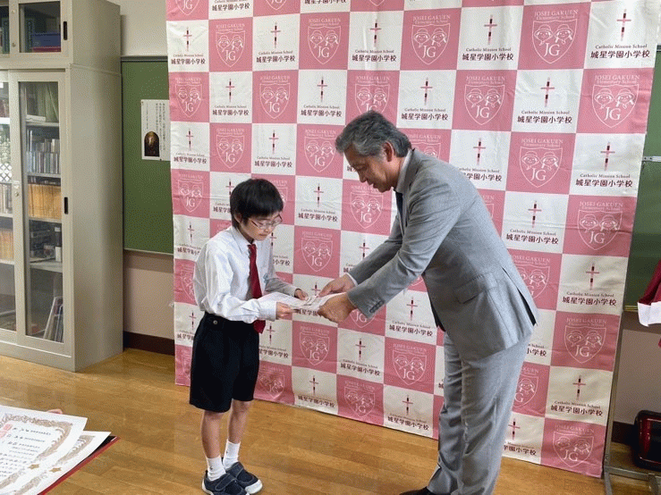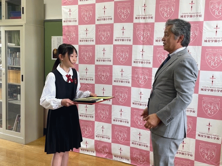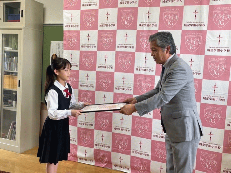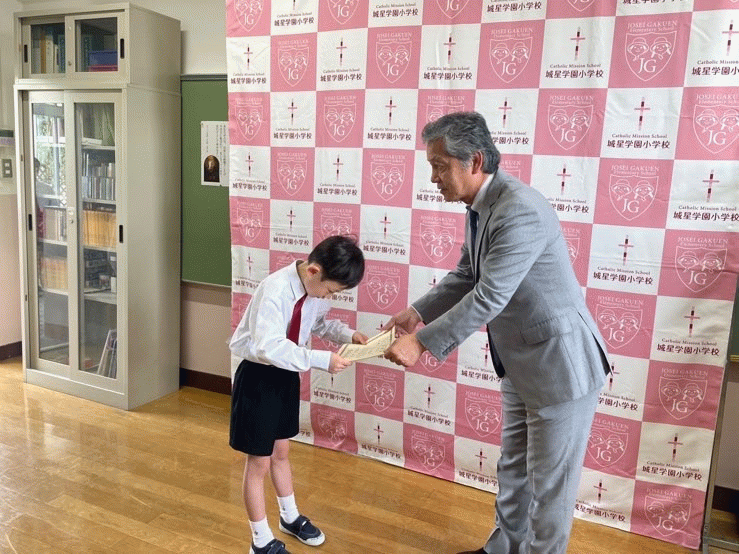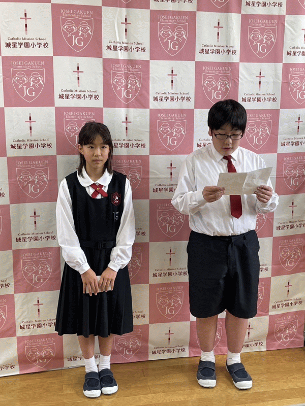 1年生が6年生をお手本にしてきちんとお祈りをする姿から城星学園小学校の良き伝統が受け継がれていると思いました。