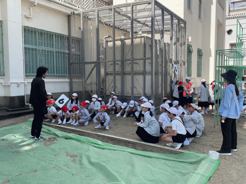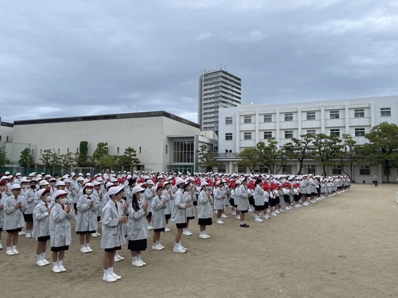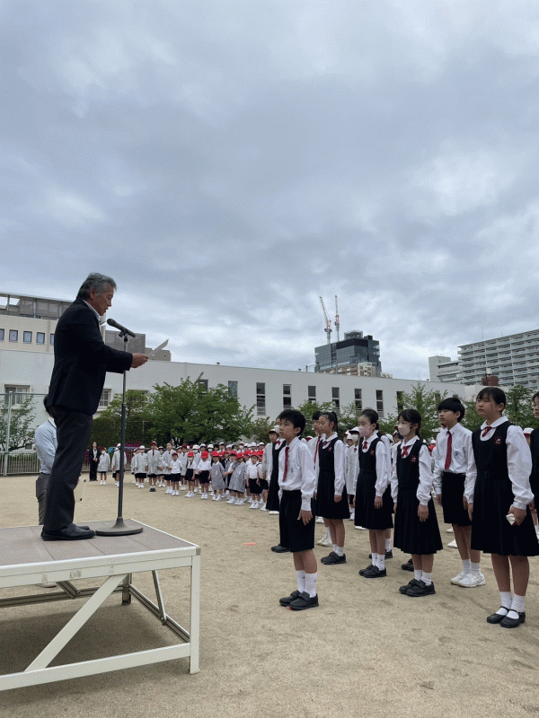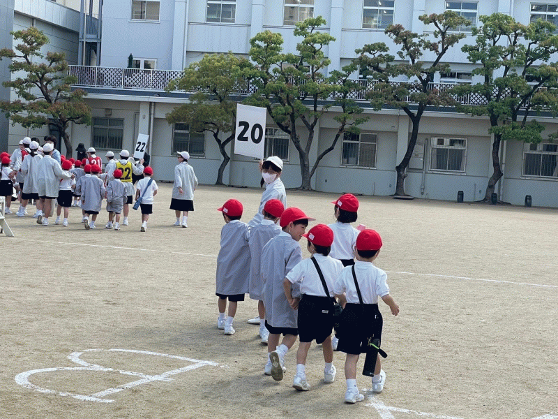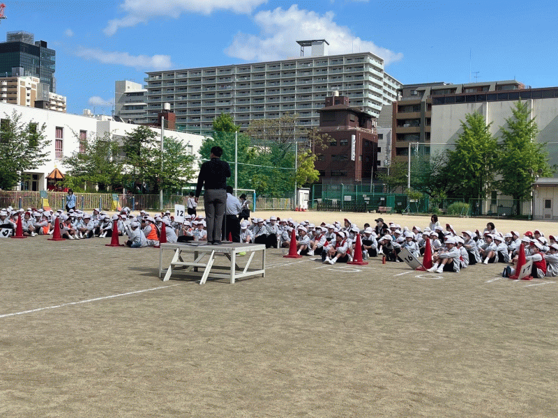 学校から大阪城公園までを想定して歩く練習をしました。6年生が1年生と手をつなぐ姿はほほえましいものでした。