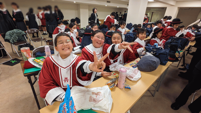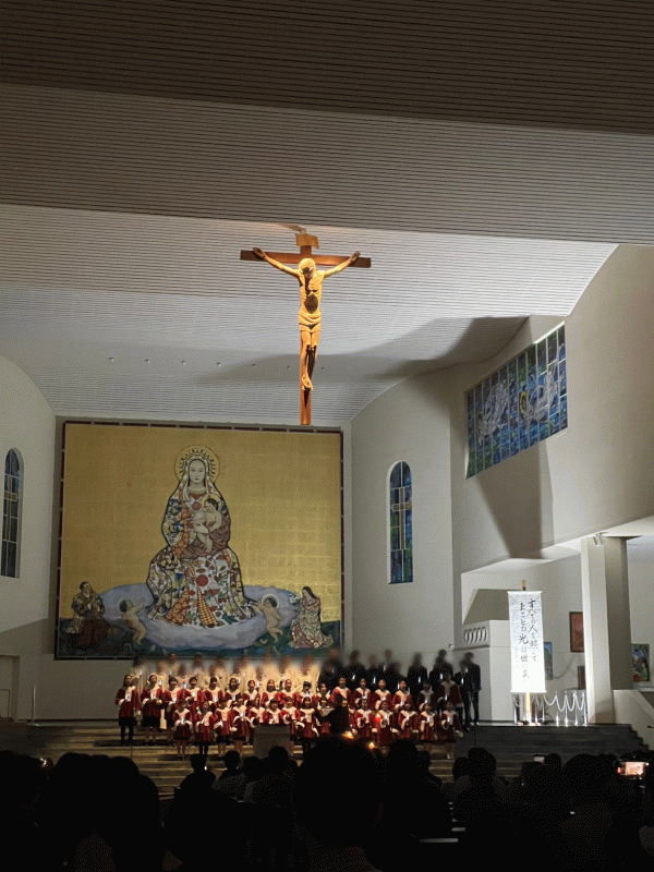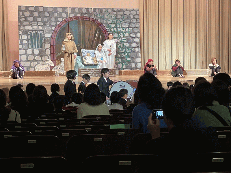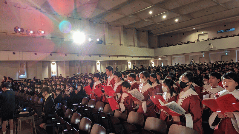 全 2994 件(全599ページ) 過去のページもご覧いただけます ⇒ 前へ 91 | 92 | 93 | 94 | 95 | 次へ 2023/12/23 聖夜の祈り 子どもたちの笑顔と共に「聖夜の祈り」が行われました。素敵な歌声を大聖堂に響かせ、クリスマスをお祝いすることができました。最後のHallelujahChorusでは、卒業生も交えて盛大な合唱となりました。良いクリスマスをお過ごしください。 聖夜の祈り 2023/12/23 子どもたちの笑顔と共に「聖夜の祈り」が行われました。素敵な歌声を大聖堂に響かせ、クリスマスをお祝いすることができました。最後のHallelujahChorusでは、卒業生も交えて盛大な合唱となりました。良いクリスマスをお過ごしください。 2023/12/20 「今日、救い主がお生まれになりました。」 本日、授業終了日を迎え、待ちに待ったクリスマスページェントを行いました。 今日まで毎日毎日、一生懸命練習に励んだ児童。 今日という日を心待ちに、指折り数えて過ごした児童。 たくさんの児童の笑顔と歌声で、講堂が溢れました。 今日まで毎日毎日、一生懸命練習に励んだ児童。 今日という日を心待ちに、指折り数えて過ごした児童。 たくさんの児童の笑顔と歌声で、講堂が溢れました。 劇に花を添えるウインド・アンサンブルクラブ。 卒業生のお姉さんもお手伝いに来てくれました。 劇に花を添えるウインド・アンサンブルクラブ。 卒業生のお姉さんもお手伝いに来てくれました。 美しい歌声で聖歌を奏でた聖歌隊。 アンサンブルと聖歌隊、どちらも3年生から6年生が力を合わせて演奏しました。 美しい歌声で聖歌を奏でた聖歌隊。 アンサンブルと聖歌隊、どちらも3年生から6年生が力を合わせて演奏しました。 本番を終えて、ほっと一息、ハイチーズ! 本番を終えて、ほっと一息、ハイチーズ! 「今日、救い主がお生まれになりました。」 2023/12/20 本日、授業終了日を迎え、待ちに待ったクリスマスページェントを行いました。 今日まで毎日毎日、一生懸命練習に励んだ児童。 今日という日を心待ちに、指折り数えて過ごした児童。 たくさんの児童の笑顔と歌声で、講堂が溢れました。 今日まで毎日毎日、一生懸命練習に励んだ児童。 今日という日を心待ちに、指折り数えて過ごした児童。 たくさんの児童の笑顔と歌声で、講堂が溢れました。 劇に花を添えるウインド・アンサンブルクラブ。 卒業生のお姉さんもお手伝いに来てくれました。 劇に花を添えるウインド・アンサンブルクラブ。 卒業生のお姉さんもお手伝いに来てくれました。 美しい歌声で聖歌を奏でた聖歌隊。 アンサンブルと聖歌隊、どちらも3年生から6年生が力を合わせて演奏しました。 美しい歌声で聖歌を奏でた聖歌隊。 アンサンブルと聖歌隊、どちらも3年生から6年生が力を合わせて演奏しました。 本番を終えて、ほっと一息、ハイチーズ! 本番を終えて、ほっと一息、ハイチーズ! 2023/12/19 主は来ませり 明日はいよいよクリスマスページェントです。本日は保護者を招いてリハーサルを行いました。 笑顔でスタンバイ! どきどきします。 笑顔でスタンバイ! どきどきします。 聖劇、ウインドアンサンブル、聖歌隊、歌ソロ たくさんの児童が活躍しています。 聖劇、ウインドアンサンブル、聖歌隊、歌ソロ たくさんの児童が活躍しています。 明日、全児童でよいクリスマスページェントを迎えられますように! 明日、全児童でよいクリスマスページェントを迎えられますように! 主は来ませり 2023/12/19 明日はいよいよクリスマスページェントです。本日は保護者を招いてリハーサルを行いました。 笑顔でスタンバイ! どきどきします。 笑顔でスタンバイ! どきどきします。 聖劇、ウインドアンサンブル、聖歌隊、歌ソロ たくさんの児童が活躍しています。 聖劇、ウインドアンサンブル、聖歌隊、歌ソロ たくさんの児童が活躍しています。 明日、全児童でよいクリスマスページェントを迎えられますように! 明日、全児童でよいクリスマスページェントを迎えられますように! 2023/12/18 聖夜の祈りに向けて 12月16日(土)お隣の玉造教会にて聖夜の祈りに向けた聖歌隊の練習を行いました大阪星光学院中学校高等学校・明星中学校高等学校・ヴェリタス城星学園中学校高等学校のお姉さんお兄さん方と一緒に歌の練習行い、さらに今年はなんと「ホリデイ・オーケストラ!」による生演奏とともに歌う曲があります。12月23日(土)17時より聖マリア大聖堂カトリック玉造教会にて聖夜の祈りが行われます。ぜひお越しください。 聖夜の祈りに向けて 2023/12/18 12月16日(土)お隣の玉造教会にて聖夜の祈りに向けた聖歌隊の練習を行いました大阪星光学院中学校高等学校・明星中学校高等学校・ヴェリタス城星学園中学校高等学校のお姉さんお兄さん方と一緒に歌の練習行い、さらに今年はなんと「ホリデイ・オーケストラ!」による生演奏とともに歌う曲があります。12月23日(土)17時より聖マリア大聖堂カトリック玉造教会にて聖夜の祈りが行われます。ぜひお越しください。 2023/12/13 チャレンジ