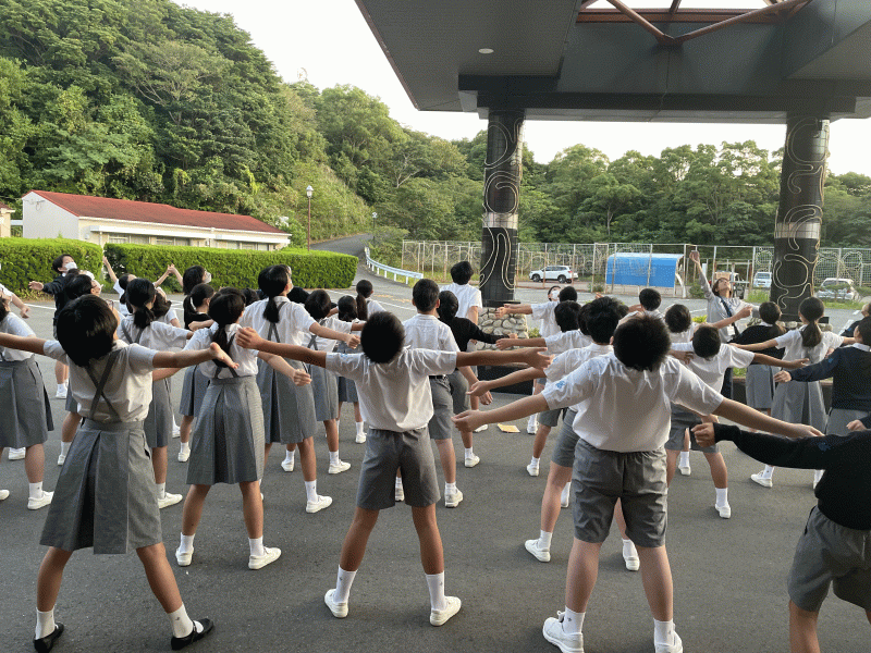 朝会では、清々しい空気の中、ラジオ体操をしました。