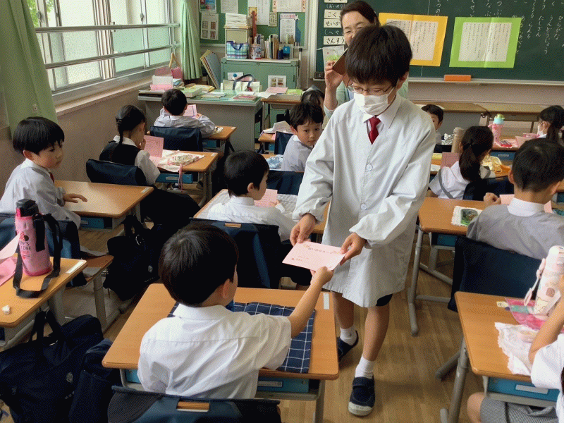 子どもたちは今日に向けて「徳の花」をお捧げするために日々準備をしてきました。