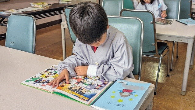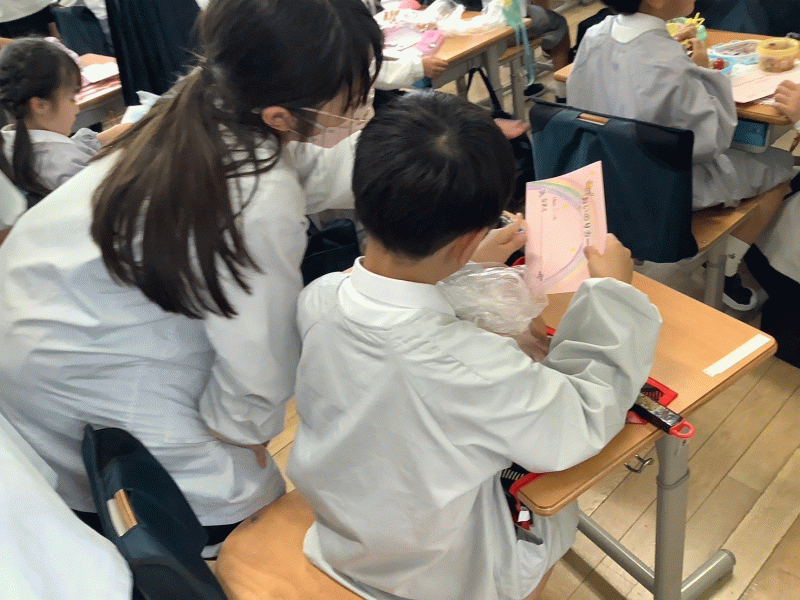 お祈りとはなにかも書かれており、1年生は嬉しそうに、じっくり読んでいます。