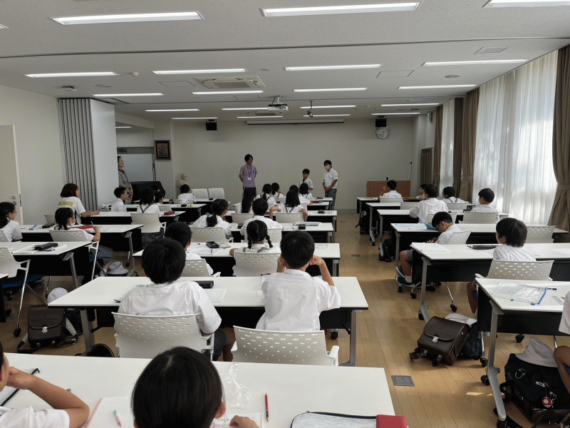 全 2967 件(全594ページ) 過去のページもご覧いただけます ⇒ 前へ 66 | 67 | 68 | 69 | 70 | 次へ 2024/6/12 輝くタラント 今日はたくさんの表彰が行われました。 空手の表彰、 空手の表彰、 将棋の表彰、 将棋の表彰、 母の日作文コンクールの表彰、 母の日作文コンクールの表彰、 そして、フルートの表彰は2人も! そして、フルートの表彰は2人も! 学校外でもそれぞれのタラントを輝かせています。 表彰後には、受賞した作文やフルートの演奏を発表しました。 学校外でもそれぞれのタラントを輝かせています。 表彰後には、受賞した作文やフルートの演奏を発表しました。 作文から、家族を思う優しい気持ちが伝わってきます。 作文から、家族を思う優しい気持ちが伝わってきます。 フルートの演奏はあたたかな音色で心がポカポカします。 フルートの演奏はあたたかな音色で心がポカポカします。 なめらかで流れるような演奏に、拍手が沸き起こりました。 なめらかで流れるような演奏に、拍手が沸き起こりました。 輝くタラント 2024/6/12 今日はたくさんの表彰が行われました。 空手の表彰、 空手の表彰、 将棋の表彰、 将棋の表彰、 母の日作文コンクールの表彰、 母の日作文コンクールの表彰、 そして、フルートの表彰は2人も! そして、フルートの表彰は2人も! 学校外でもそれぞれのタラントを輝かせています。 表彰後には、受賞した作文やフルートの演奏を発表しました。 学校外でもそれぞれのタラントを輝かせています。 表彰後には、受賞した作文やフルートの演奏を発表しました。 作文から、家族を思う優しい気持ちが伝わってきます。 作文から、家族を思う優しい気持ちが伝わってきます。 フルートの演奏はあたたかな音色で心がポカポカします。 フルートの演奏はあたたかな音色で心がポカポカします。 なめらかで流れるような演奏に、拍手が沸き起こりました。 なめらかで流れるような演奏に、拍手が沸き起こりました。 2024/6/11 本番への準備 快晴の中、運動会の予行を行いました。 団体演技・団体競技を行い、本番に向けて手ごたえをつかむことができました。 団体演技・団体競技を行い、本番に向けて手ごたえをつかむことができました。 暑い中の予行でしたが、本番さながらの熱気と応援の中で子どもたちは頑張っていました。 係児童は自分たちの演目をしながらも、予行がスムーズに進むように役割を果たそうと頑張っていました。 当日が楽しみです。 暑い中の予行でしたが、本番さながらの熱気と応援の中で子どもたちは頑張っていました。 係児童は自分たちの演目をしながらも、予行がスムーズに進むように役割を果たそうと頑張っていました。 当日が楽しみです。 本番への準備 2024/6/11 快晴の中、運動会の予行を行いました。 団体演技・団体競技を行い、本番に向けて手ごたえをつかむことができました。 団体演技・団体競技を行い、本番に向けて手ごたえをつかむことができました。 暑い中の予行でしたが、本番さながらの熱気と応援の中で子どもたちは頑張っていました。 係児童は自分たちの演目をしながらも、予行がスムーズに進むように役割を果たそうと頑張っていました。 当日が楽しみです。 暑い中の予行でしたが、本番さながらの熱気と応援の中で子どもたちは頑張っていました。 係児童は自分たちの演目をしながらも、予行がスムーズに進むように役割を果たそうと頑張っていました。 当日が楽しみです。 2024/6/10 1年生初めてのプログラミング 子どもたちは講師の方の話を興味津々に聞いていました。 子どもたちは講師の方の話を興味津々に聞いていました。 パソコンの操作やロボットの動きに夢中になっていました。 これからのプログラミングの授業で何をしていくのか楽しみです。 パソコンの操作やロボットの動きに夢中になっていました。 これからのプログラミングの授業で何をしていくのか楽しみです。 1年生初めてのプログラミング 2024/6/10 子どもたちは講師の方の話を興味津々に聞いていました。 子どもたちは講師の方の話を興味津々に聞いていました。 パソコンの操作やロボットの動きに夢中になっていました。 これからのプログラミングの授業で何をしていくのか楽しみです。 パソコンの操作やロボットの動きに夢中になっていました。 これからのプログラミングの授業で何をしていくのか楽しみです。 2024/6/7 ケアンズに向けて 児童に向けてケアンズ事前講習会を行いました。 5年生が体験談を話しました。 体験談を聞いてケアンズへのイメージが膨らみ、いっそう楽しみになりました。 5年生が体験談を話しました。 体験談を聞いてケアンズへのイメージが膨らみ、いっそう楽しみになりました。 ケアンズに向けて 2024/6/7 児童に向けてケアンズ事前講習会を行いました。 5年生が体験談を話しました。 体験談を聞いてケアンズへのイメージが膨らみ、いっそう楽しみになりました。 5年生が体験談を話しました。 体験談を聞いてケアンズへのイメ