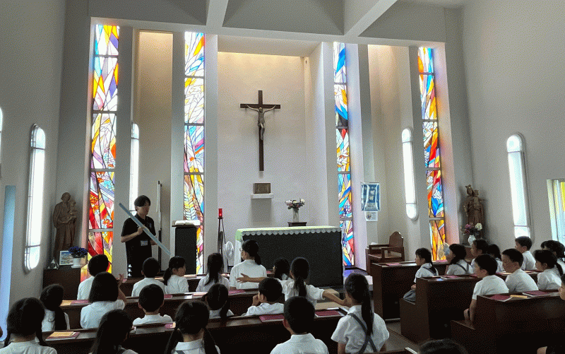 全 2982 件(全597ページ) 過去のページもご覧いただけます ⇒ 前へ 66 | 67 | 68 | 69 | 70 | 次へ 2024/6/19 あと1日 今日は運動会練習最終日です。 明日の本番に向けて最終の仕上げを行いました。 明日の本番に向けて最終の仕上げを行いました。 練習をしていると空に虹がかかっていました。 明日の運動会が成功しますように。 練習をしていると空に虹がかかっていました。 明日の運動会が成功しますように。 あと1日 2024/6/19 今日は運動会練習最終日です。 明日の本番に向けて最終の仕上げを行いました。 明日の本番に向けて最終の仕上げを行いました。 練習をしていると空に虹がかかっていました。 明日の運動会が成功しますように。 練習をしていると空に虹がかかっていました。 明日の運動会が成功しますように。 2024/6/18 心をあわせて 雨が上がり、午後から3・4年生が運動会集団演技の練習をしました。 普段は別々に過ごす3・4年生。 集団演技では、声を、動きを、心をあわせて、一生懸命に踊ります。 ひとりひとり輝いている姿がとても素敵です! 普段は別々に過ごす3・4年生。 集団演技では、声を、動きを、心をあわせて、一生懸命に踊ります。 ひとりひとり輝いている姿がとても素敵です! 心をあわせて 2024/6/18 雨が上がり、午後から3・4年生が運動会集団演技の練習をしました。 普段は別々に過ごす3・4年生。 集団演技では、声を、動きを、心をあわせて、一生懸命に踊ります。 ひとりひとり輝いている姿がとても素敵です! 普段は別々に過ごす3・4年生。 集団演技では、声を、動きを、心をあわせて、一生懸命に踊ります。 ひとりひとり輝いている姿がとても素敵です! 2024/6/17 光の子の「り」 休み時間、小聖堂ではお祈りの集いが開かれました。今日は、長いお箸を使ってご飯を食べる天国と地獄のお話です。 地獄では、自分一人だけでご飯を食べようとしますが、長いお箸ではご飯をつかむことができても口に運ぶことができないので、食べることができません。 天国では、一人が長いお箸でご飯をつかんで、もう一人の口に運びます。協力することで、みんながご飯を食べることができます。 地獄では、自分一人だけでご飯を食べようとしますが、長いお箸ではご飯をつかむことができても口に運ぶことができないので、食べることができません。 天国では、一人が長いお箸でご飯をつかんで、もう一人の口に運びます。協力することで、みんながご飯を食べることができます。 光の子の「り」は、隣人の必要に気付く子。 自分のことだけでなく、周りの人のことを考えて、大切に過ごすことができますように。 光の子の「り」は、隣人の必要に気付く子。 自分のことだけでなく、周りの人のことを考えて、大切に過ごすことができますように。 光の子の「り」 2024/6/17 休み時間、小聖堂ではお祈りの集いが開かれました。今日は、長いお箸を使ってご飯を食べる天国と地獄のお話です。 地獄では、自分一人だけでご飯を食べようとしますが、長いお箸ではご飯をつかむことができても口に運ぶことができないので、食べることができません。 天国では、一人が長いお箸でご飯をつかんで、もう一人の口に運びます。協力することで、みんながご飯を食べることができます。 地獄では、自分一人だけでご飯を食べようとしますが、長いお箸ではご飯をつかむことができても口に運ぶことができないので、食べることができません。 天国では、一人が長いお箸でご飯をつかんで、もう一人の口に運びます。協力することで、みんながご飯を食べることができます。 光の子の「り」は、隣人の必要に気付く子。 自分のことだけでなく、周りの人のことを考えて、大切に過ごすことができますように。 光の子の「り」は、隣人の必要に気付く子。 自分のことだけでなく、周りの人のことを考えて、大切に過ごすことができますように。 2024/6/14 カメさんの名前 飼育・栽培委員会によるテレビ放送がありました。 カメさんの名前をみんなで投票して決めます! 「みどり」「カメッチ」「のこのこ」「カメ子」「丸亀」 いったい、どの名前になるのでしょうか? カメさんの名前をみんなで投票して決めます! 「みどり」「カメッチ」「のこのこ」「カメ子」「丸亀」 いったい、どの名前になるのでしょうか? カメさんの名前 2024/6/14 飼育・栽培委員会によるテレビ放送がありました。 カメさんの名前をみんなで投票して決めます! 「みどり」「カメッチ」「のこのこ」「カメ子」「丸亀」 いったい、どの名前になるのでしょうか? カメさんの名前をみんなで投票して決めます! 「みどり」「カメッチ」「のこのこ」「カメ子」「丸亀」 いったい、どの名前になるのでしょうか? 2024/6/13 ぐんぐん成長中 2年生が育てている野菜たちです。 立派なナスが育ってきました。 立派なナスが育ってきました。 こちらはキュウリ。 黄色い花が咲いています。 他にもピーマンを育て中! こちらはキュウリ。 黄色い花が咲いています。 他に