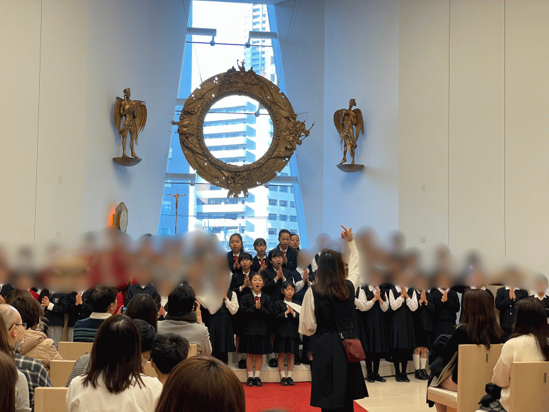 カトリック小学校の聖歌隊・合唱部による合同演奏です。