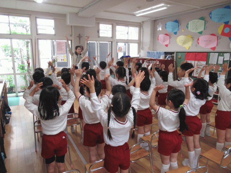 今日は年長になってのはじめての英語指導と音楽指導がありました!♪