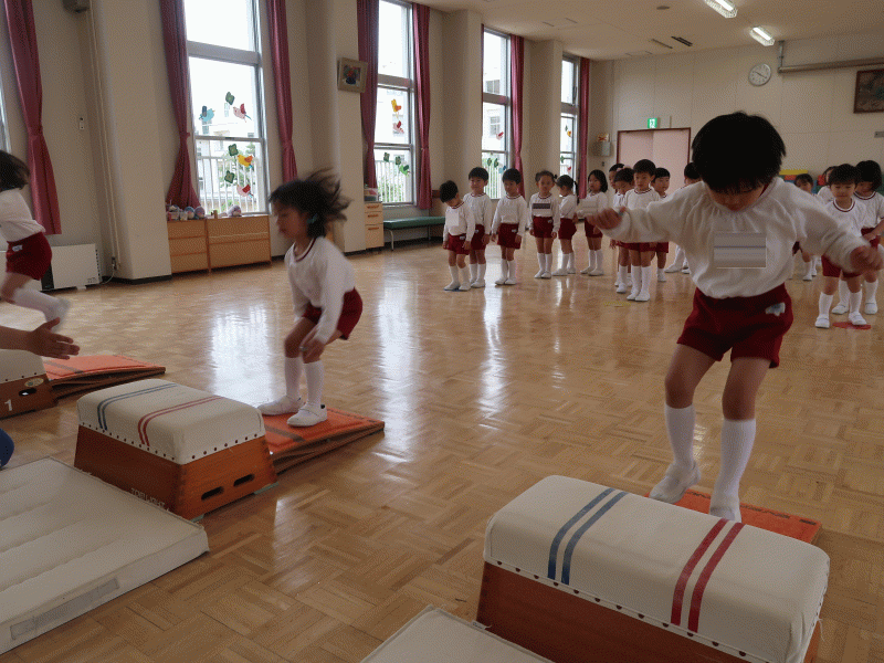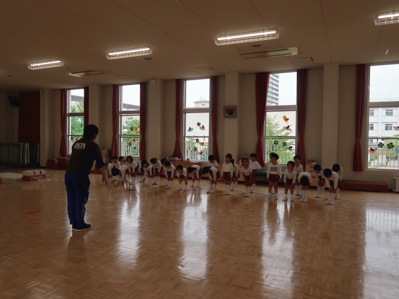 年少さんのころから憧れの体育指導でしたが、子どもたちは何をするのかドキドキ!「どんなことを教えてくれるのかな?」遊戯室に向かう子どもたちはワクワク!