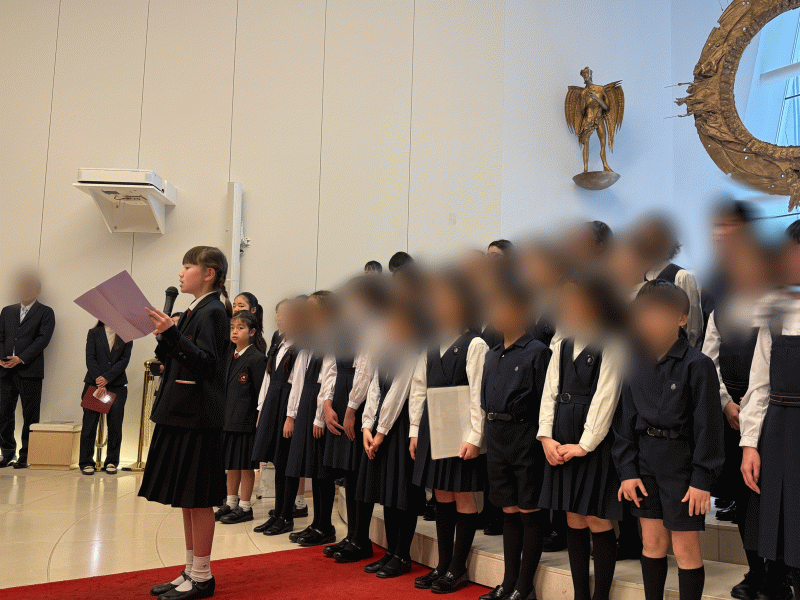 四年生の児童が、学校を代表して「城星学園小学校の好きなところ」を作文にして、発表しました。