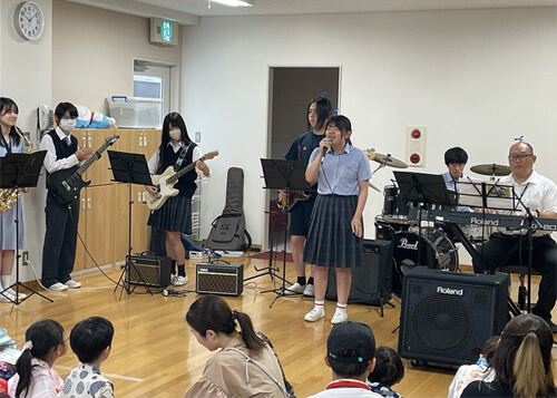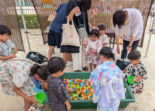 暑い中、たくさんの子どもたちが遊びに来てくれて、大変賑わいました。今年は、高校生のイベントブースが設けられ、ダンスや歌の披露、楽器の演奏などで、盛り上げてくれました。イベントを終えた高校生たちは、ボランティアとしてお手伝いをしてくれました。