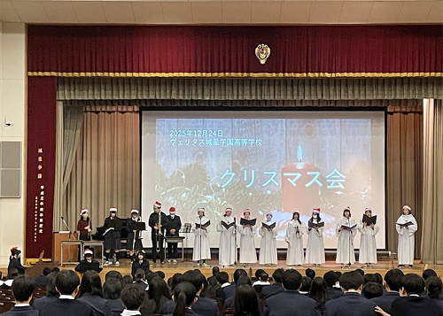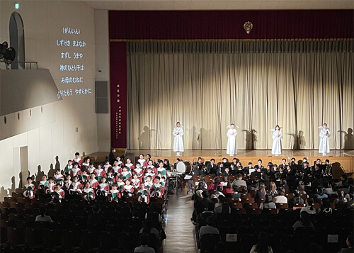 高校では、生徒会の皆さんによる劇や聖歌隊や軽音楽部の演奏など、盛りだくさんなクリスマス会でした。