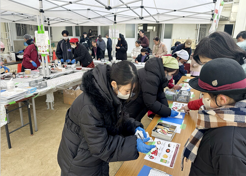 当日は、大寒波がやってくるとの予報でどうなることかと心配していました。一日中風が冷たかったですが、雨や雪が降ることなく、たくさんの子どもさんや保護者の方が来場され、餅つき体験やつきたてのお餅を色んな味で召し上がっていただくことができました♪